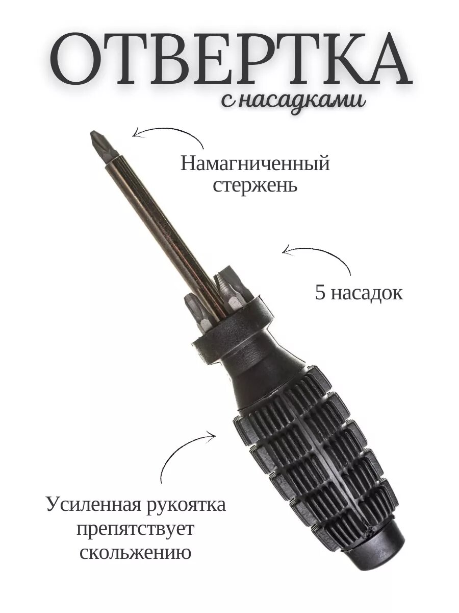 Отвертка С насадками 5 насадок Crv усил РУЧ FIT