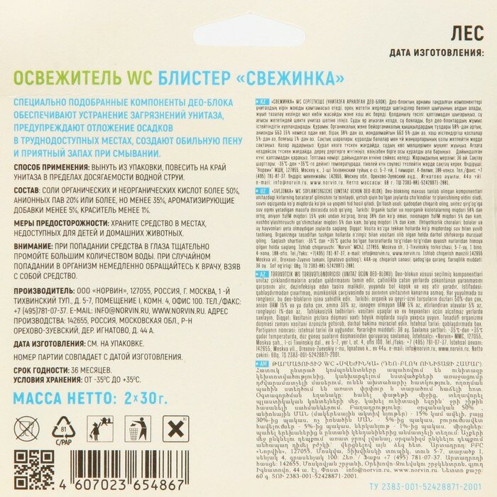 Освежающий блистер для унитаза Свежинка "Лес", 30 г, 2 шт