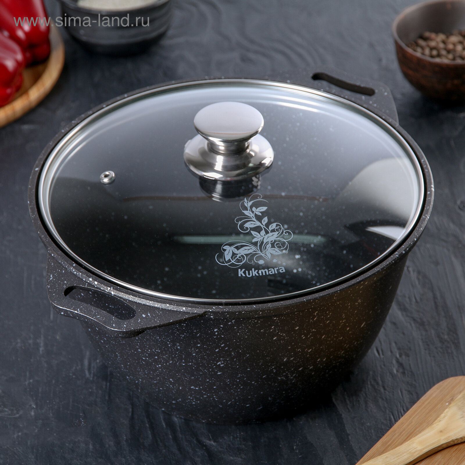 Кастрюля Kukmara Темный мрамор 6л со стеклянной крышкой (кмт62-1а) .