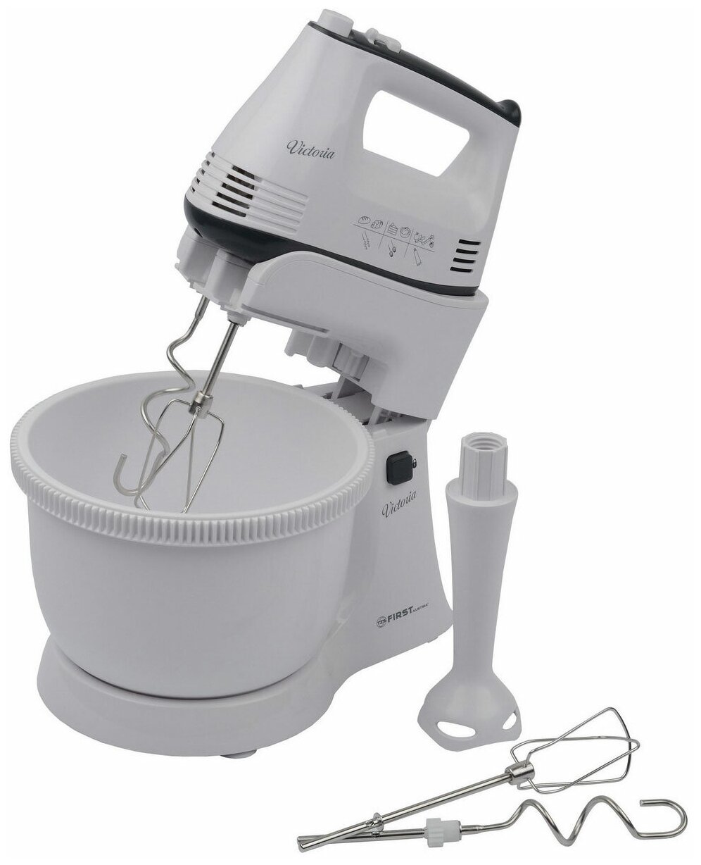 Миксер с чашей FIRST, 300 Вт, 5 скор, турбо, вращ.чаша с крышкой 3.5 л, 2 пары насадок, FA-5257-1 White