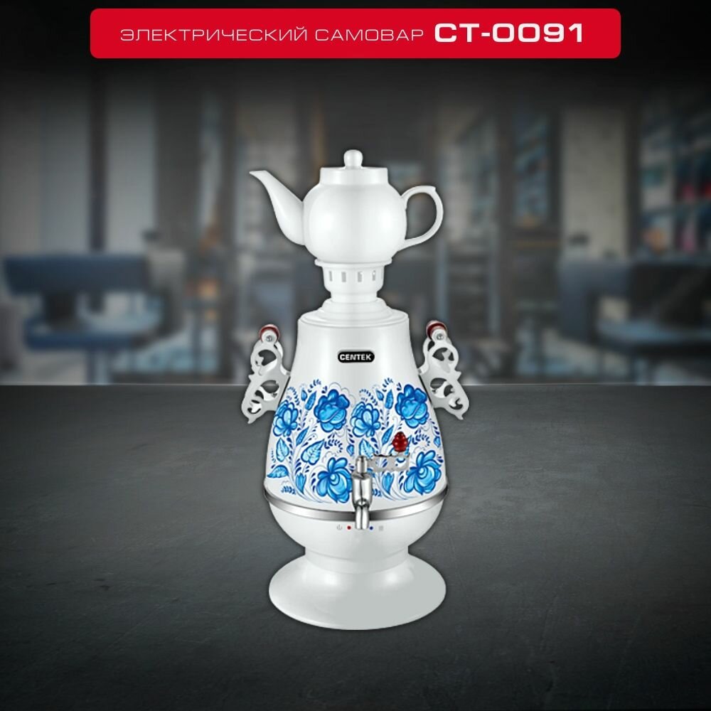 Самовар электрический CENTEK СТ-0091A 4 л, 2100 Вт, белый/голубой