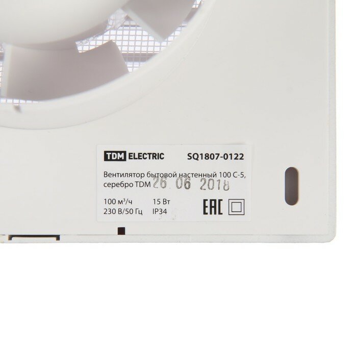 Вентилятор вытяжной настенный, TDM Electric, установочный диаметр 100 мм, 15 Вт, 100 м3/час, SQ1807-0001