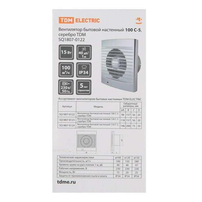 Ниже Вы можете прочитать отзывы на Вентилятор вытяжной TDM 100 С-5, d=100 мм, серебро, ознакомится с подробными характеристиками, посмотреть интересные обзоры и фотографии на Вентилятор вытяжной TDM 100 С-5, d=100 мм, серебро.