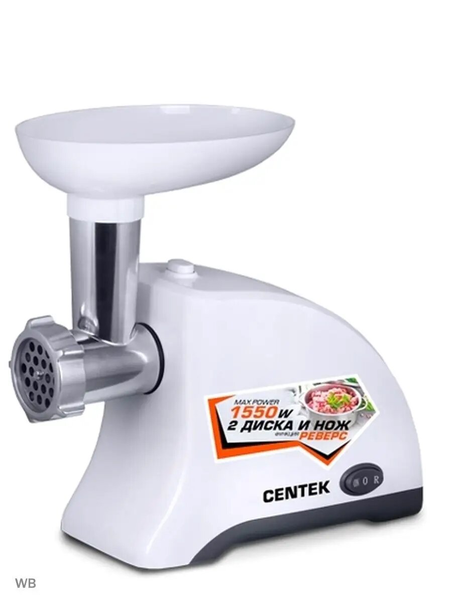 Мясорубка Centek Ct-1609, 1550 Вт, реверс, 2 диска, стальной нож и узлы, белая Centek 1804810 .
