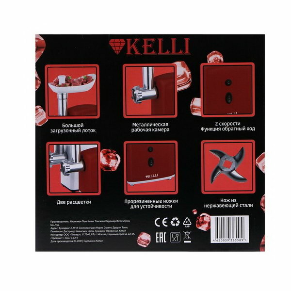 Мясорубка электрическая, мясорубка электрическая для дома, электромясорубка Kelli, 2 скорости, система реверса, 2400 Вт, 3 насадки, красный