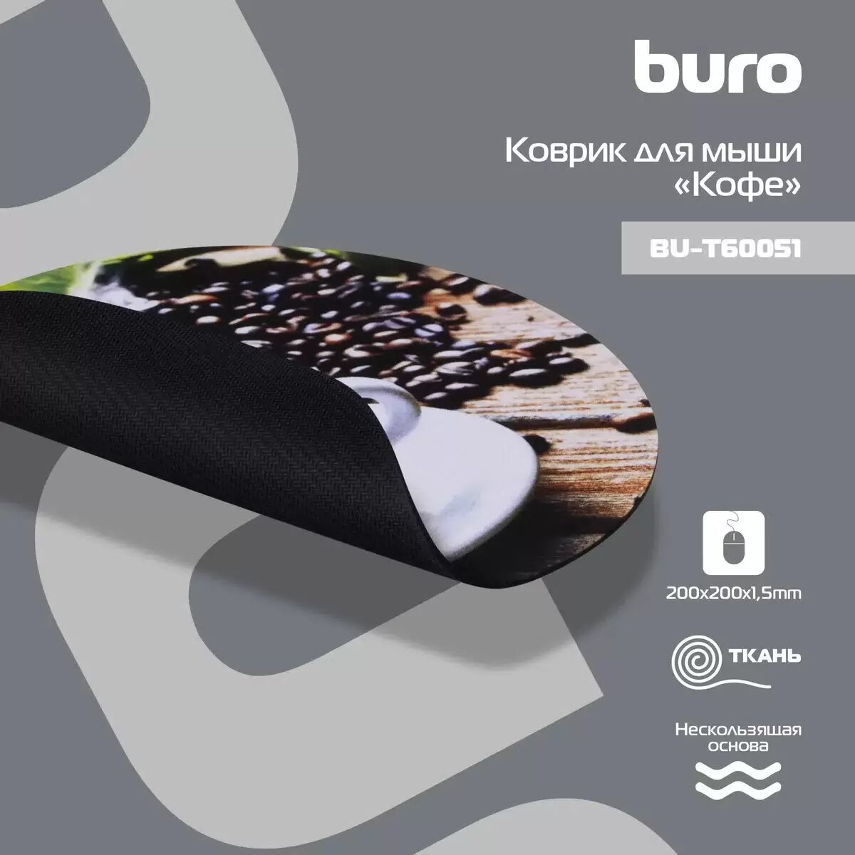 Коврик для мыши Buro BU-T60051 рисунок/кофе 200x200x1.5мм интересное: