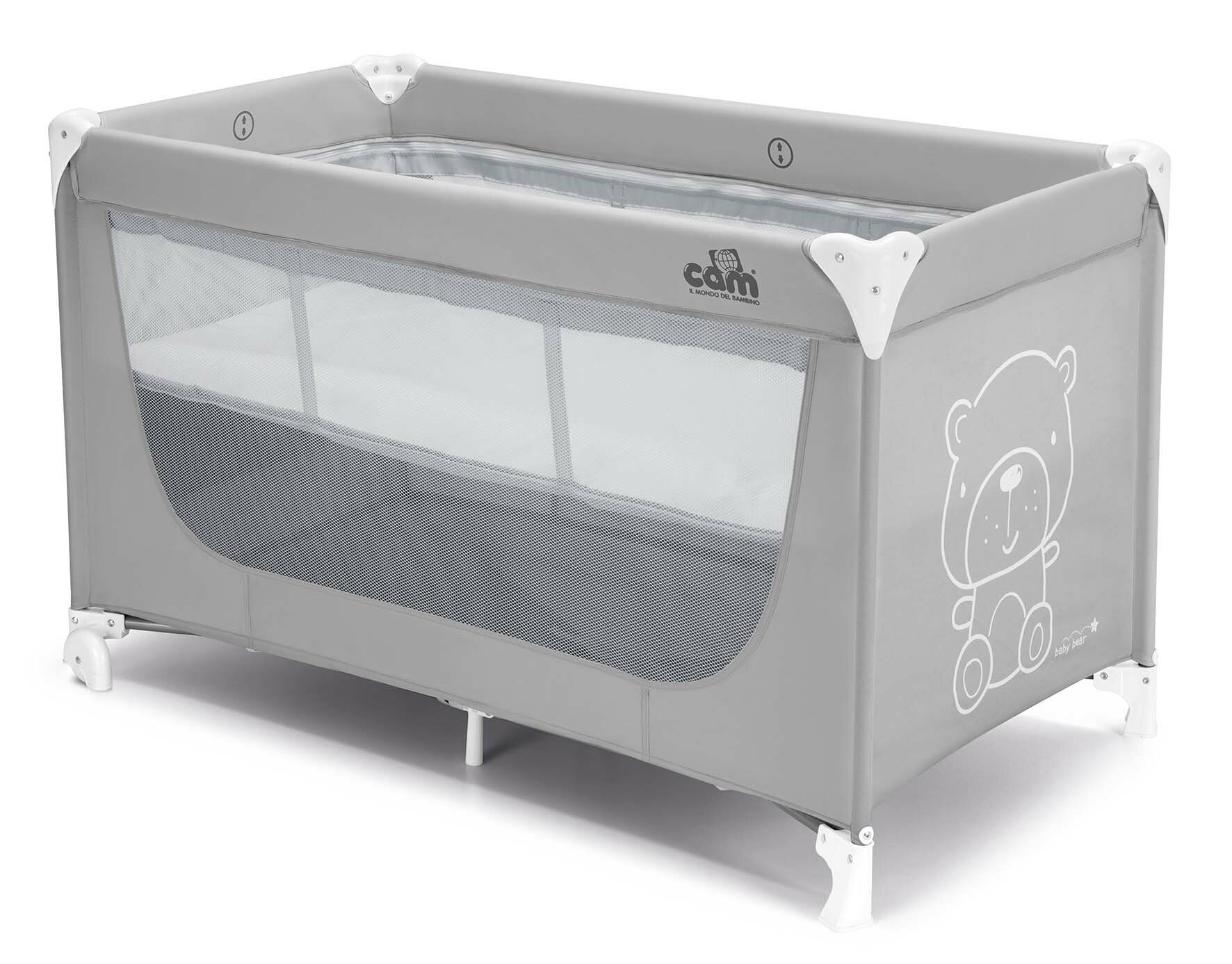 Манеж-кроватка Cam Pisolino с медвежонком, складной, 124.5х71х75 см, двухуровневый, боковой карман для хранения, 2 колеса интересное: