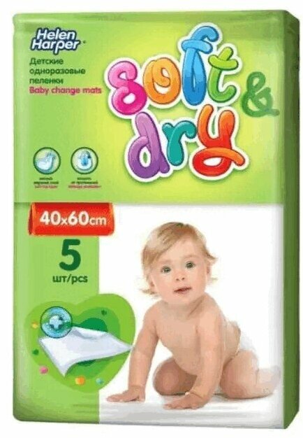 Одноразовая пеленка Helen Harper Soft & Dry 40х60, 5 шт.