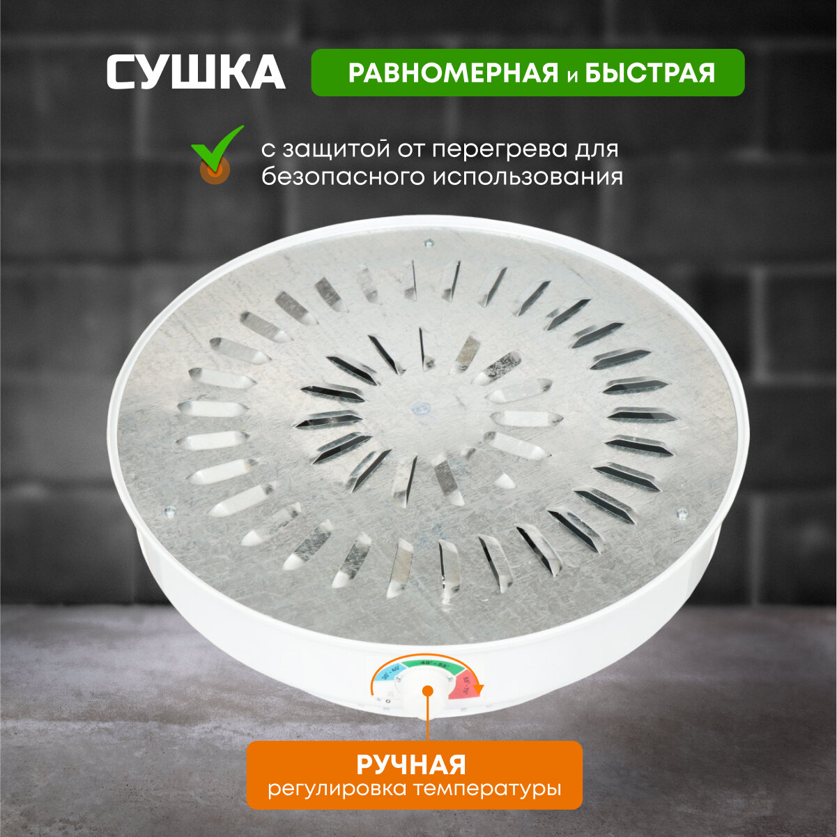 | Плюсы: | Хорошо сушит, простая в использовании, много поддонов в комплекте, хорошо упакована, не повредилась при доставке |