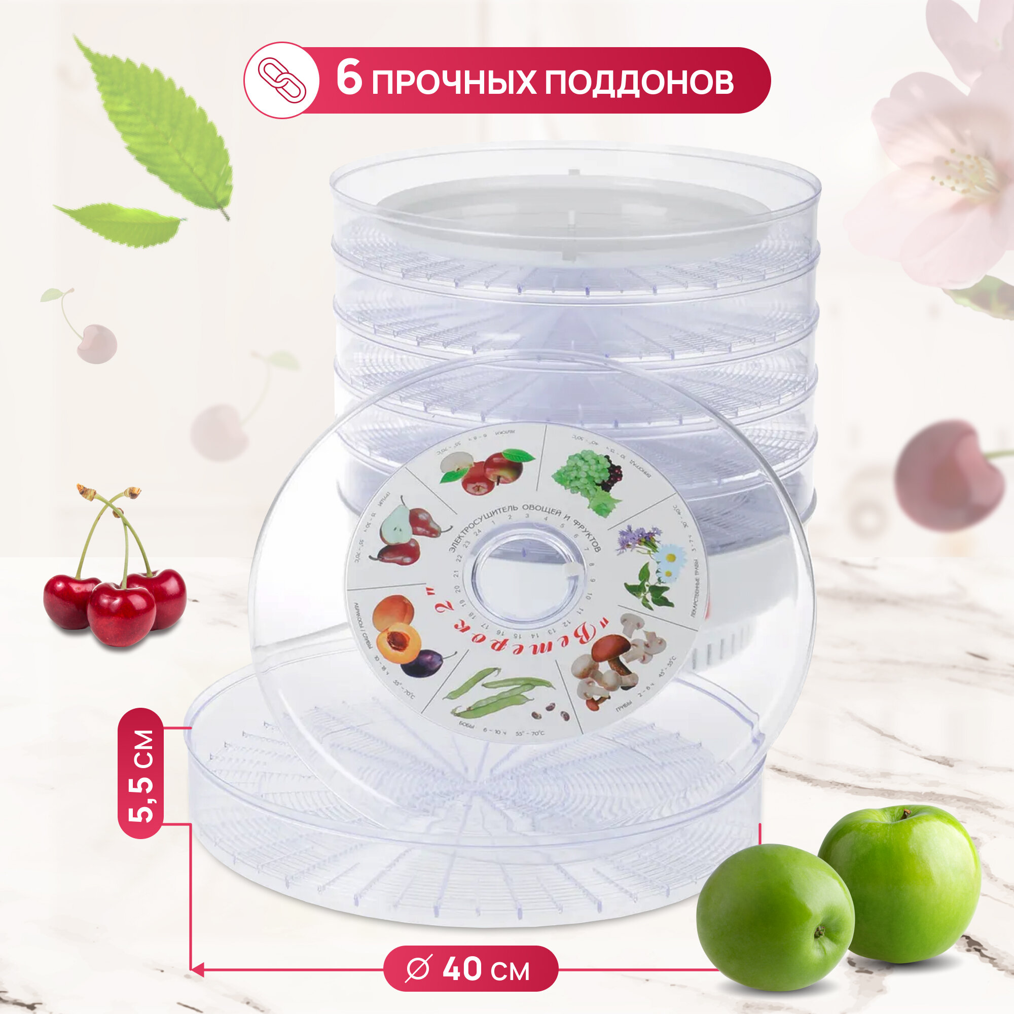 Сушилка для овощей, грибов и фруктов Ветерок-2 6 прозрачных поддонов
