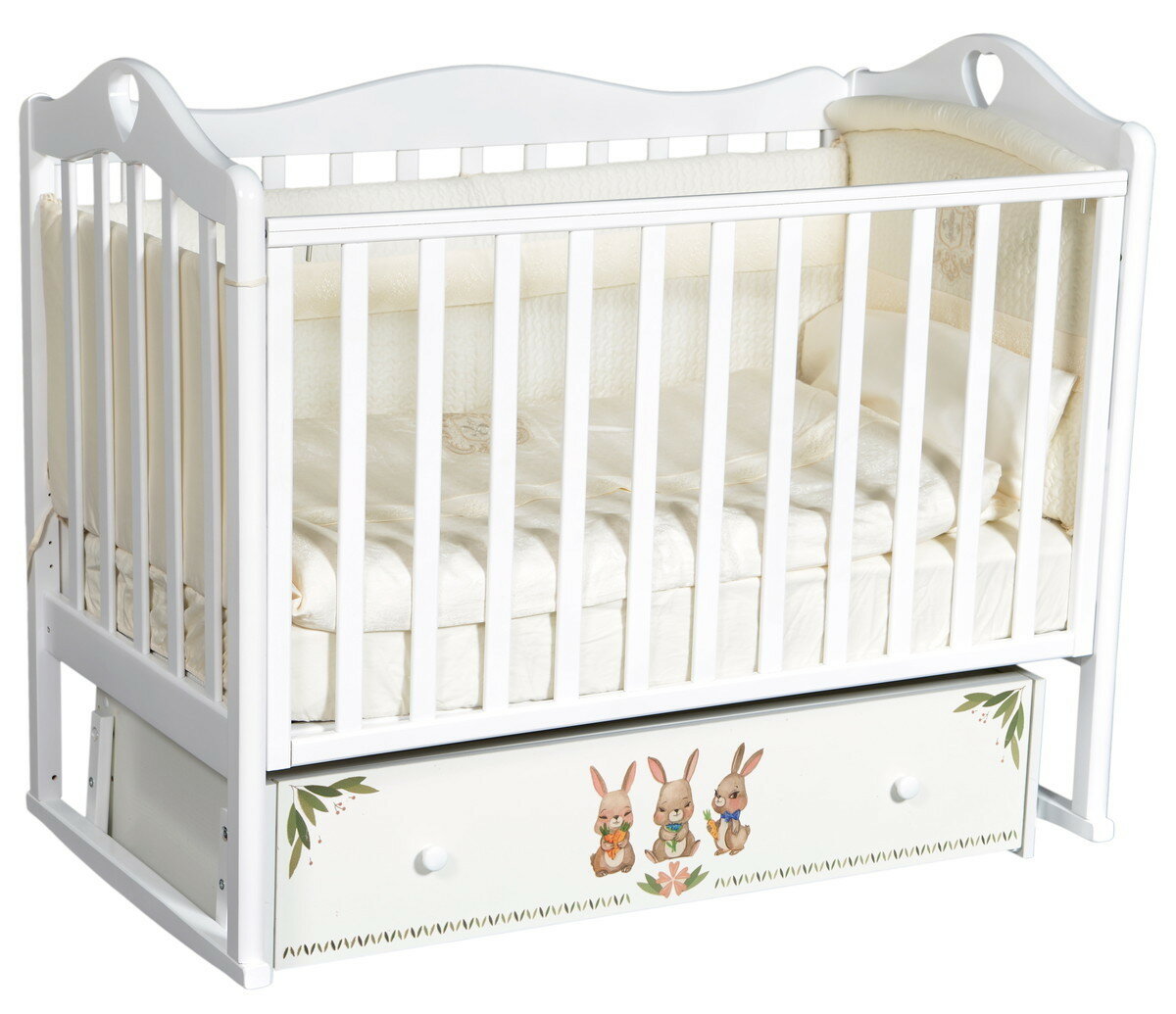 Кроватка By Twinz Зайки с ящиком и поперечным маятником - белый