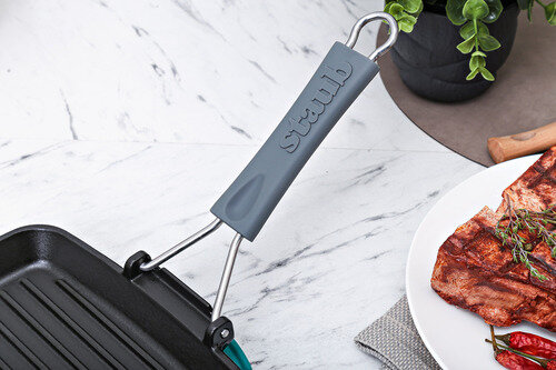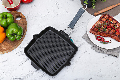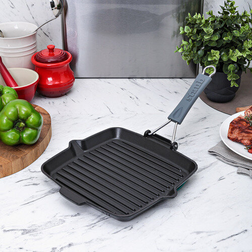 Сковорода для гриля Staub квадратная, черная с силиконовой ручкой, 24х24 см .