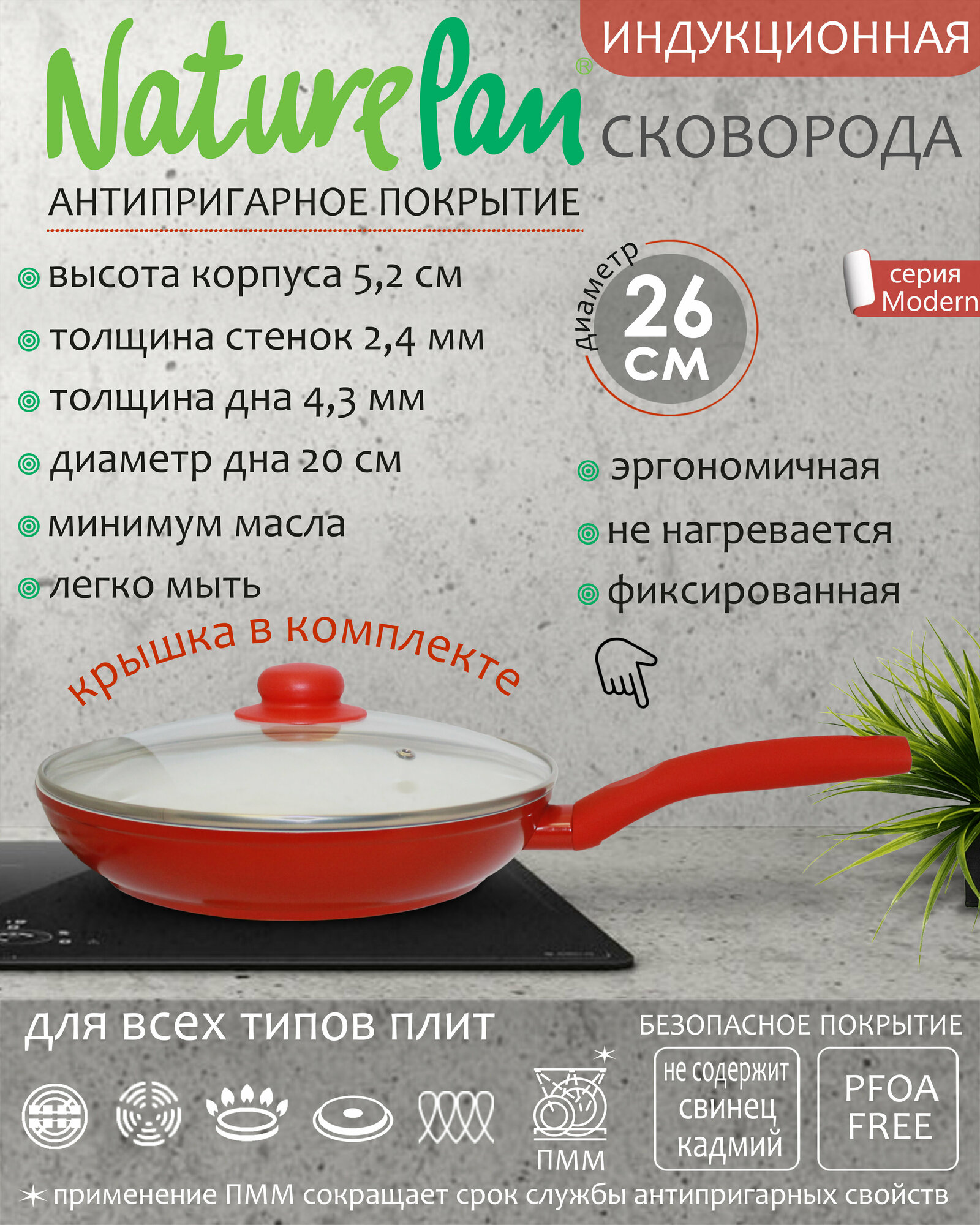 Сковорода с крышкой NaturePan Modern индукция 26см интересное: