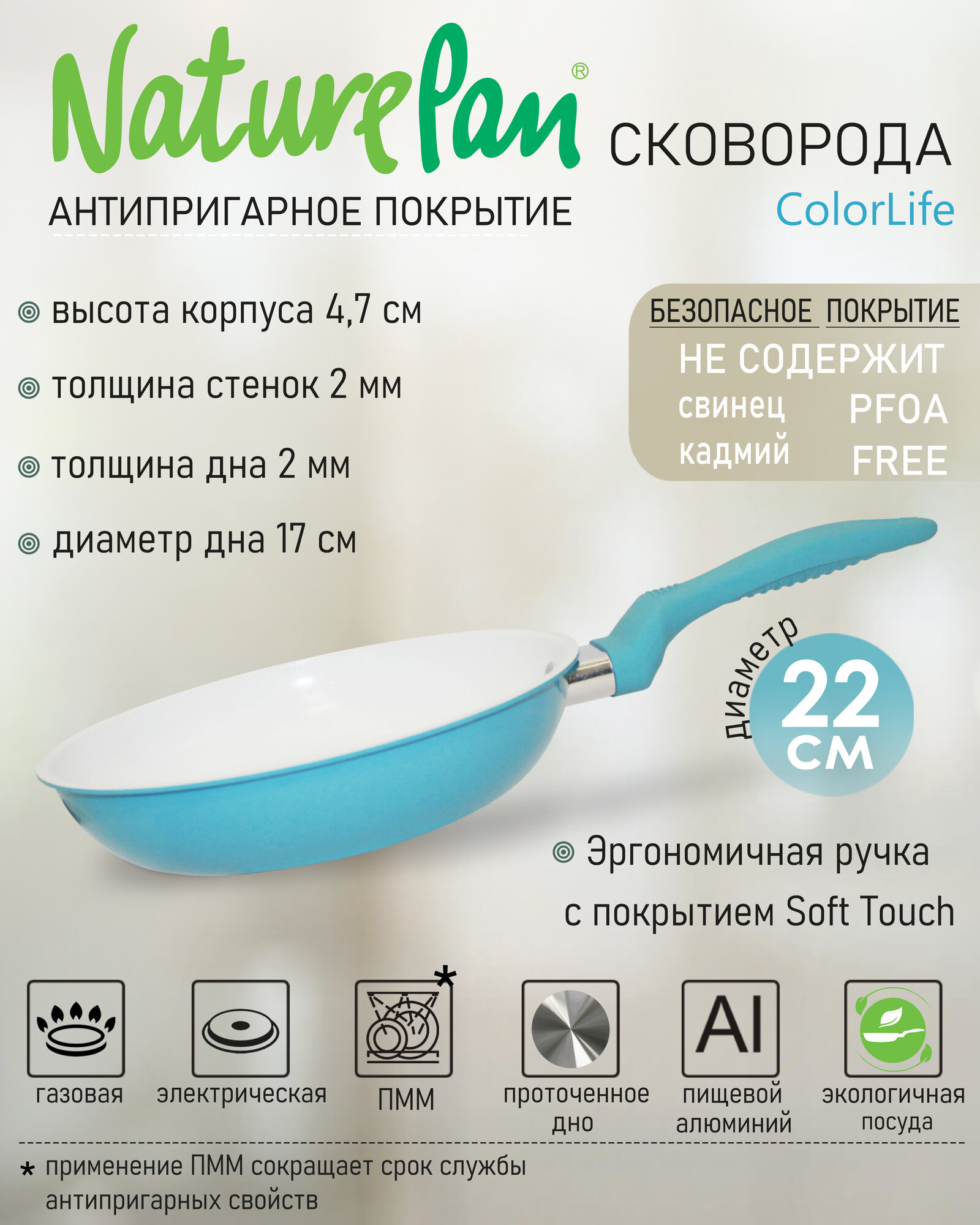 Сковорода NaturePan ColorLife 22см (голубой) интересное: