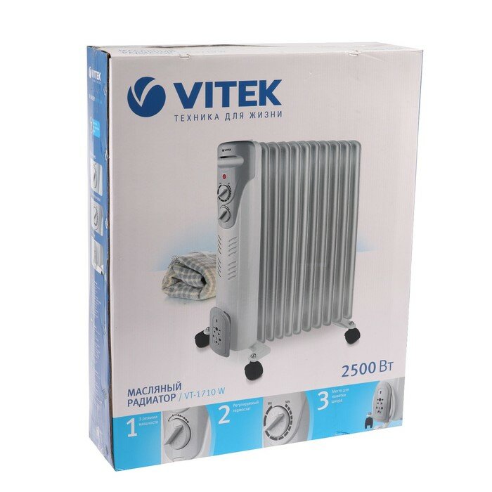 Купить VITEK Обогреватель Vitek VT-1710 W, масляный, 2500 Вт, 11 секций, 25 м², белый