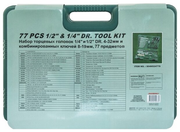 Набор инструмента универсальный 1/4'', 1/2''DR, 77 предметов,Jonnesway ,S04H52477S