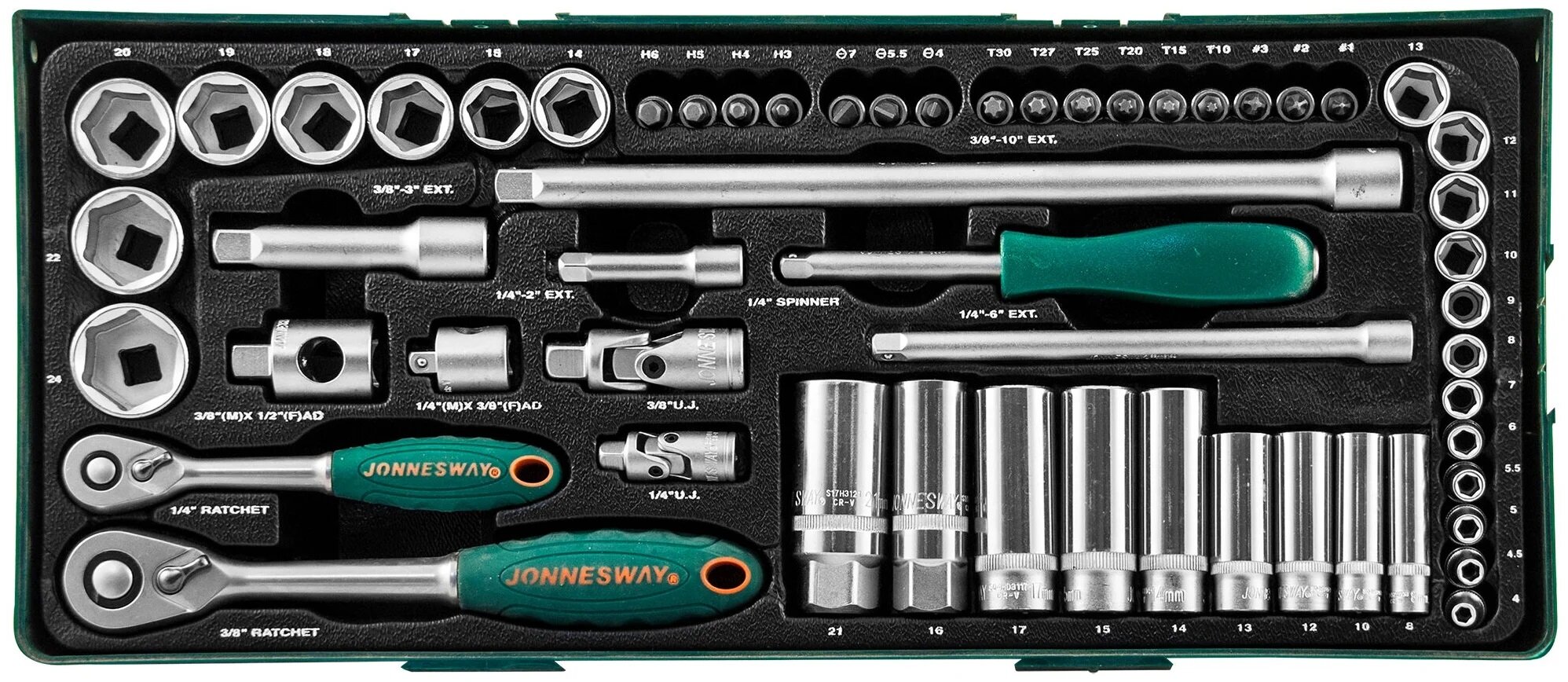 Набор Головок Торцевых Стандартных И Глубоких 1/4 И 3/8"Dr В Ложементе, 4-24 Мм, 57 Предметов" Jonnesway арт. S04H3157SP