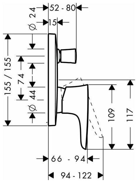 | Угол поворота рукоятки вертик. | 25 градусов |