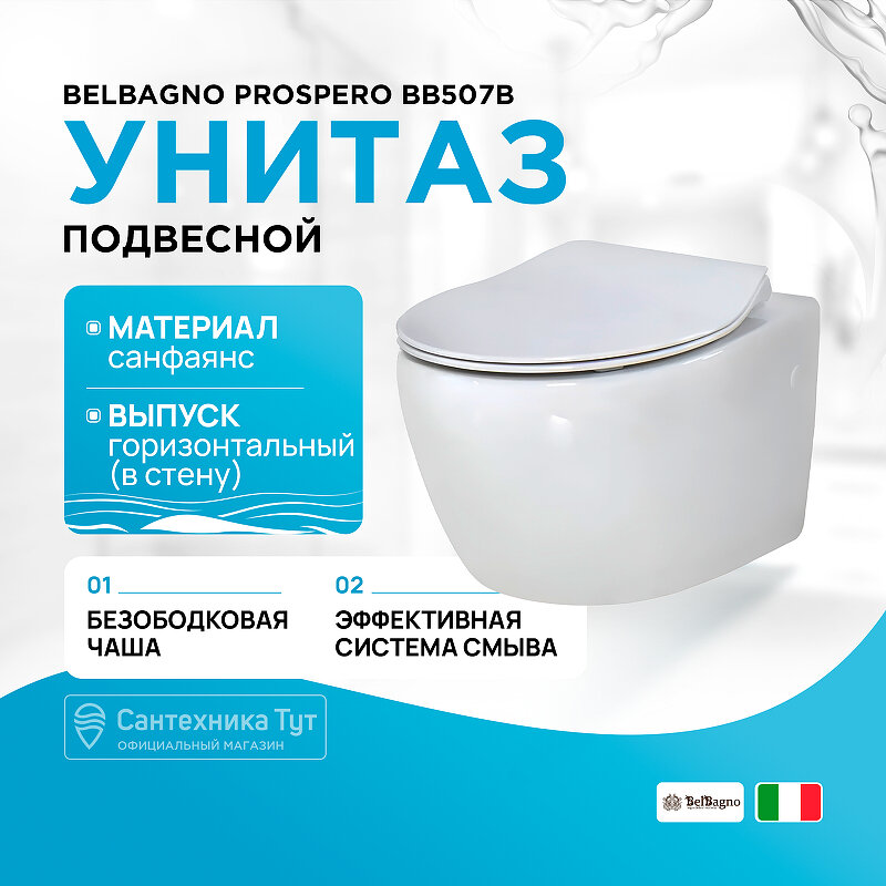 Ниже Вы можете прочитать отзывы на Belbagno PROSPERO Чаша унитаза подвесного безободкового BB507B без крышки, ознакомится с подробными характеристиками, посмотреть интересные обзоры и фотографии на Belbagno PROSPERO Чаша унитаза подвесного безободкового BB507B без крышки.