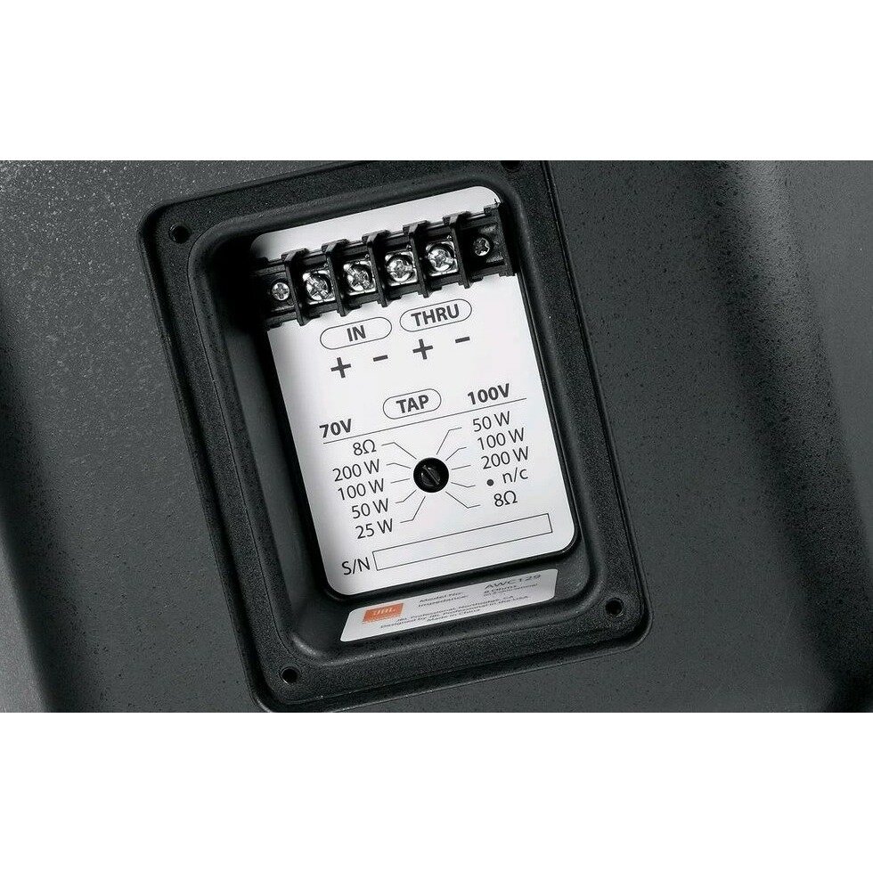 JBL AWC82-BK 2-полосная компактная коаксиальная всепогодная АС IP56, стеклопластиковый/ABS корпус, НЧ 8", ВЧ 1", коническая направленность 120°x120°. Мощность 200Вт (IEC, 100 часов), 94дБ/1Вт/1м, SPL program 121дБ, 80-20000Гц. Трансформатор 70/100В 200Вт,