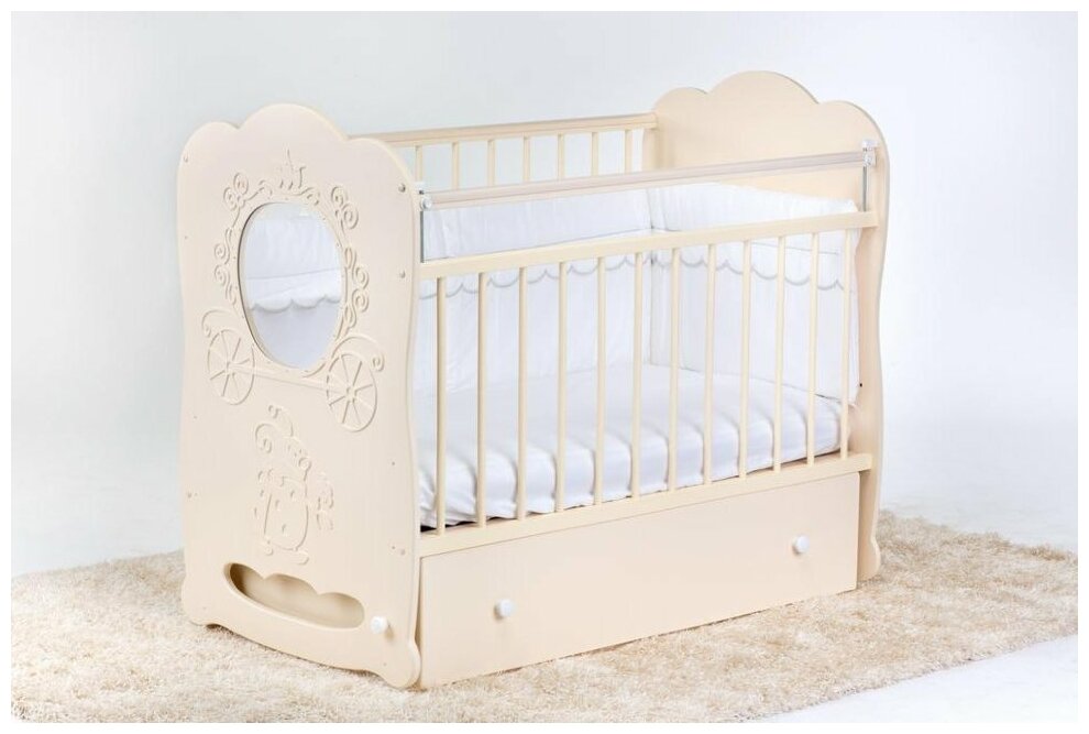 Кроватка "Карета" маятник поперечный с ящиком слоновая кость