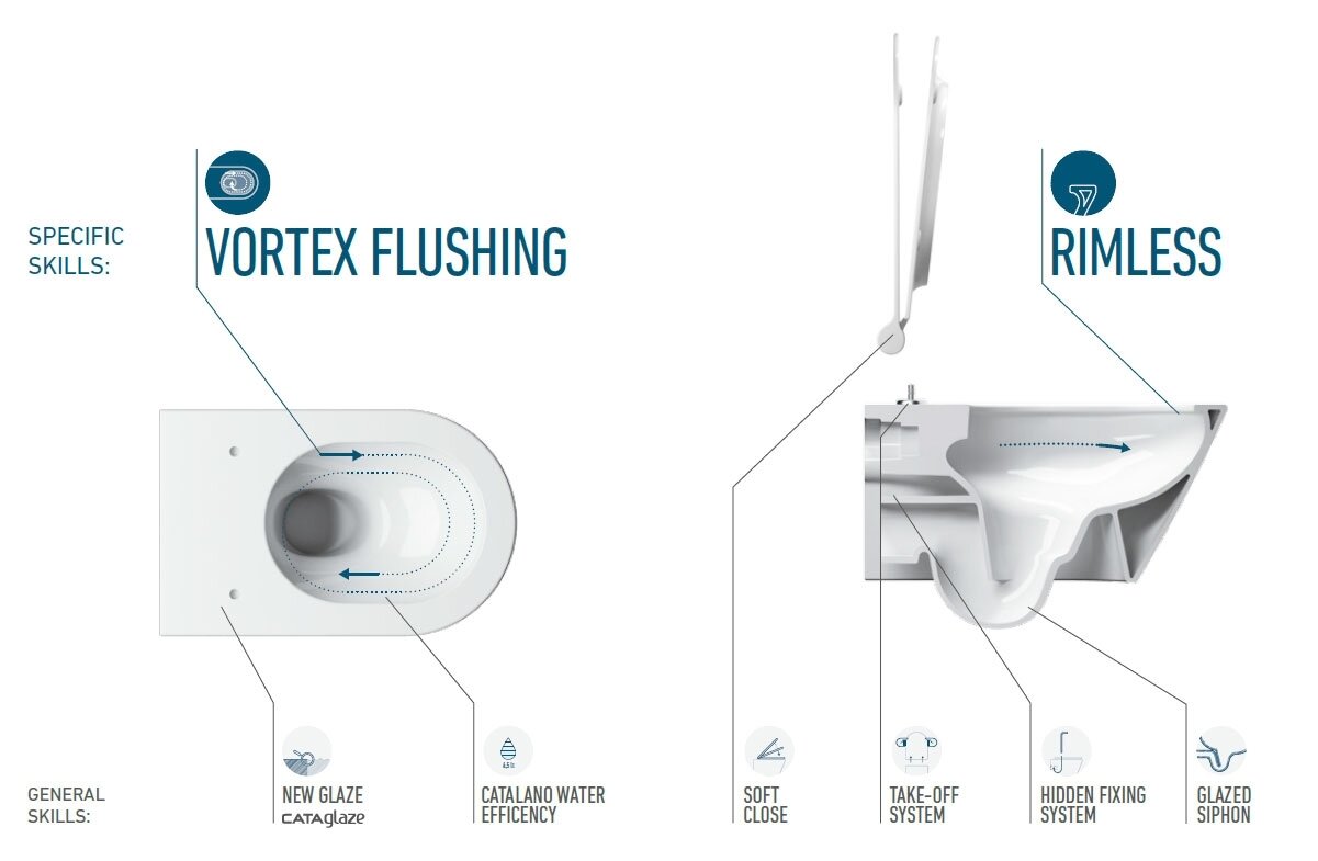 Унитазы Catalano Унитаз подвесной безободковый с системой вихревого смыва NewFlush 4,5 л, 55 х 35 см (1VS55NR00) интересное: