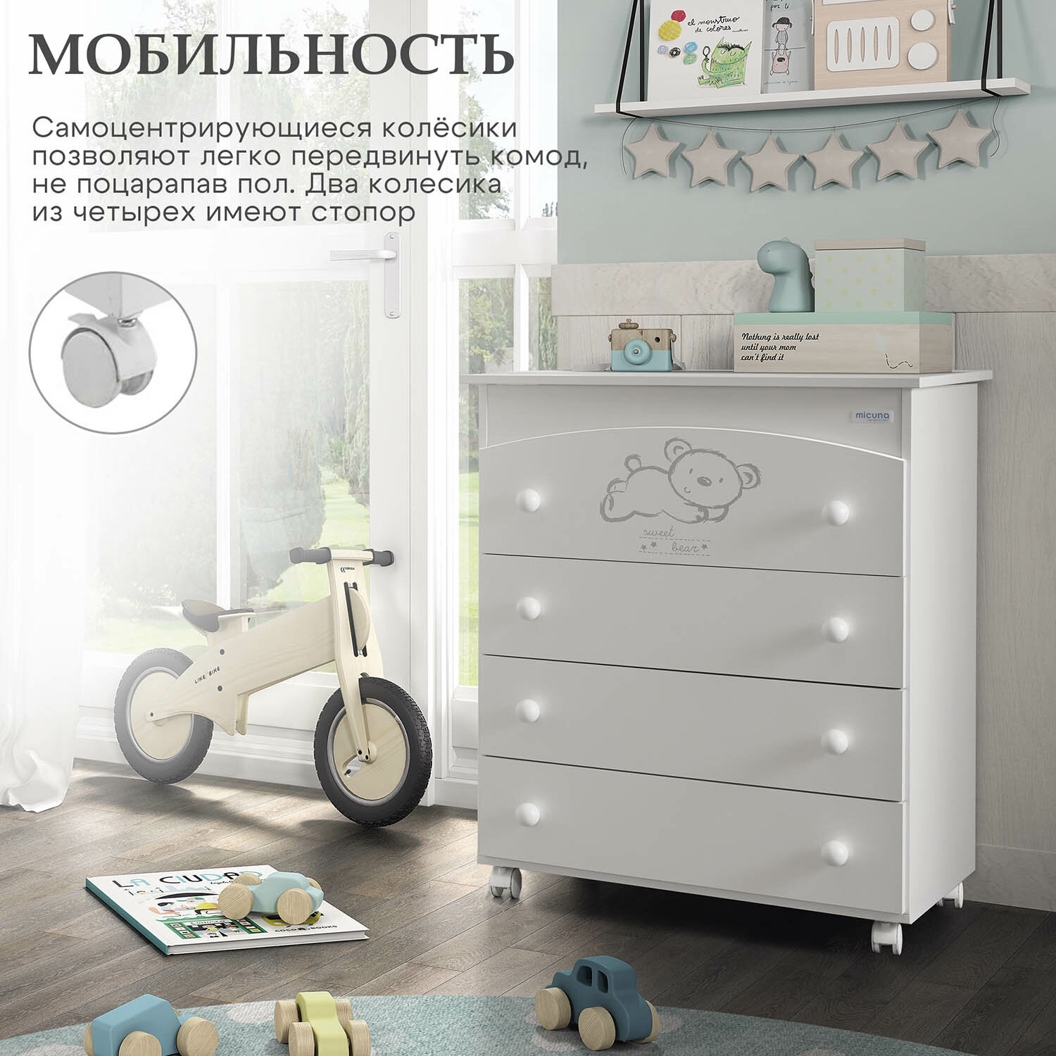 Комод Micuna Sweet Bear пеленальный B-970 white матрасик stars grey интересное:
