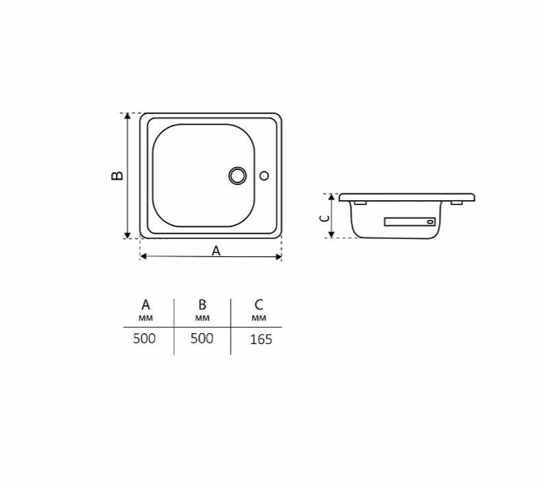 Мойка стальная эмалированная ВИЗ 500х500х172мм с кронштейнами