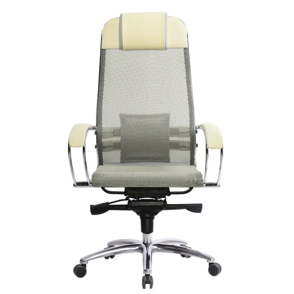 Кресло METTA компьютерное молочное, сетка, экокожа, крестовина металл - Кресло руководителя, с подголовником