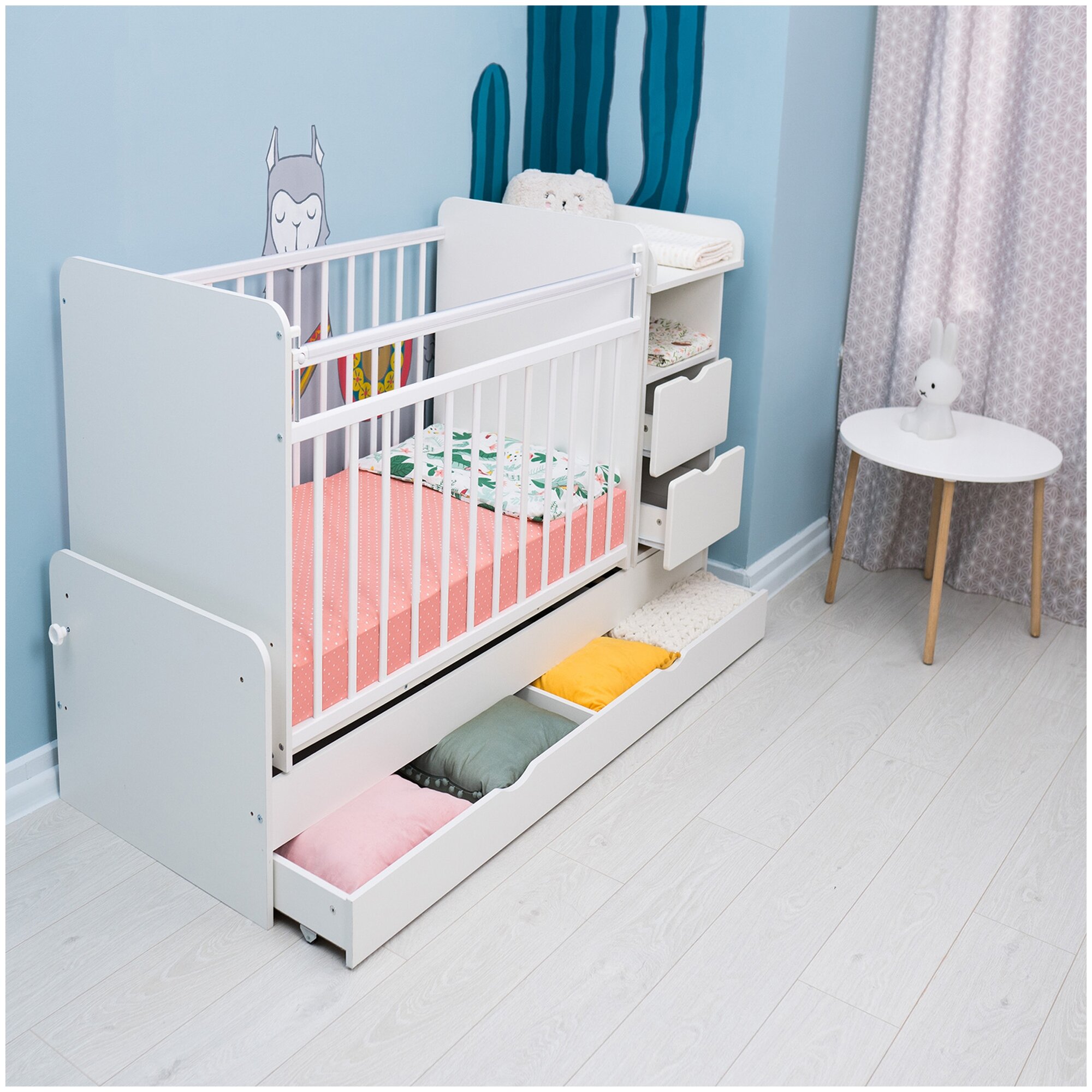 | Плюсы: | универсальная кроватка + пеленальный комод с удобными ящичками |