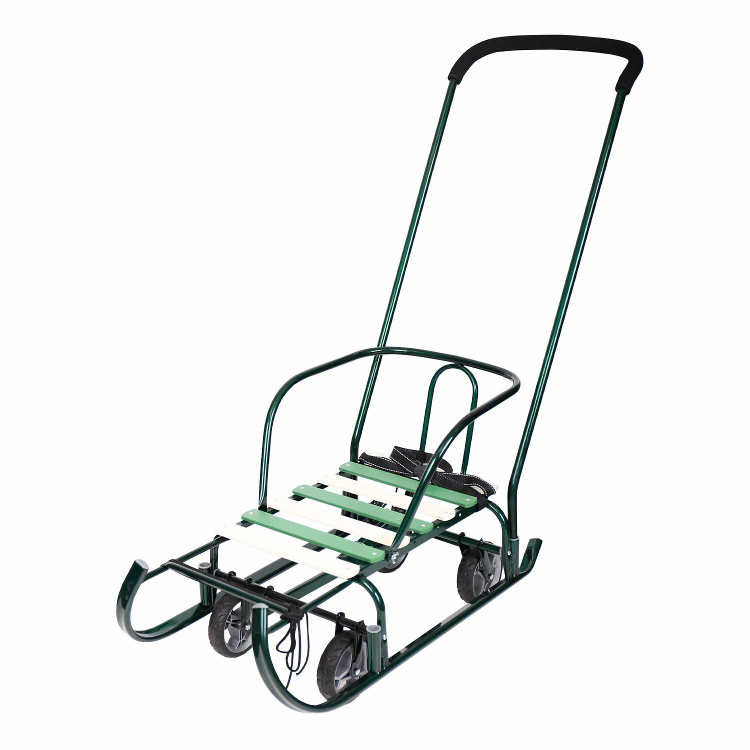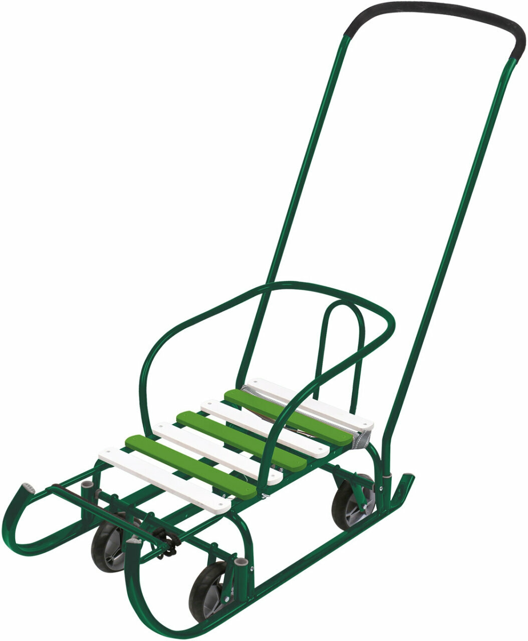 Санки Тимка 6 Универсал зеленый лак с 4-я колесами (спинка и ручка) Т6У/З