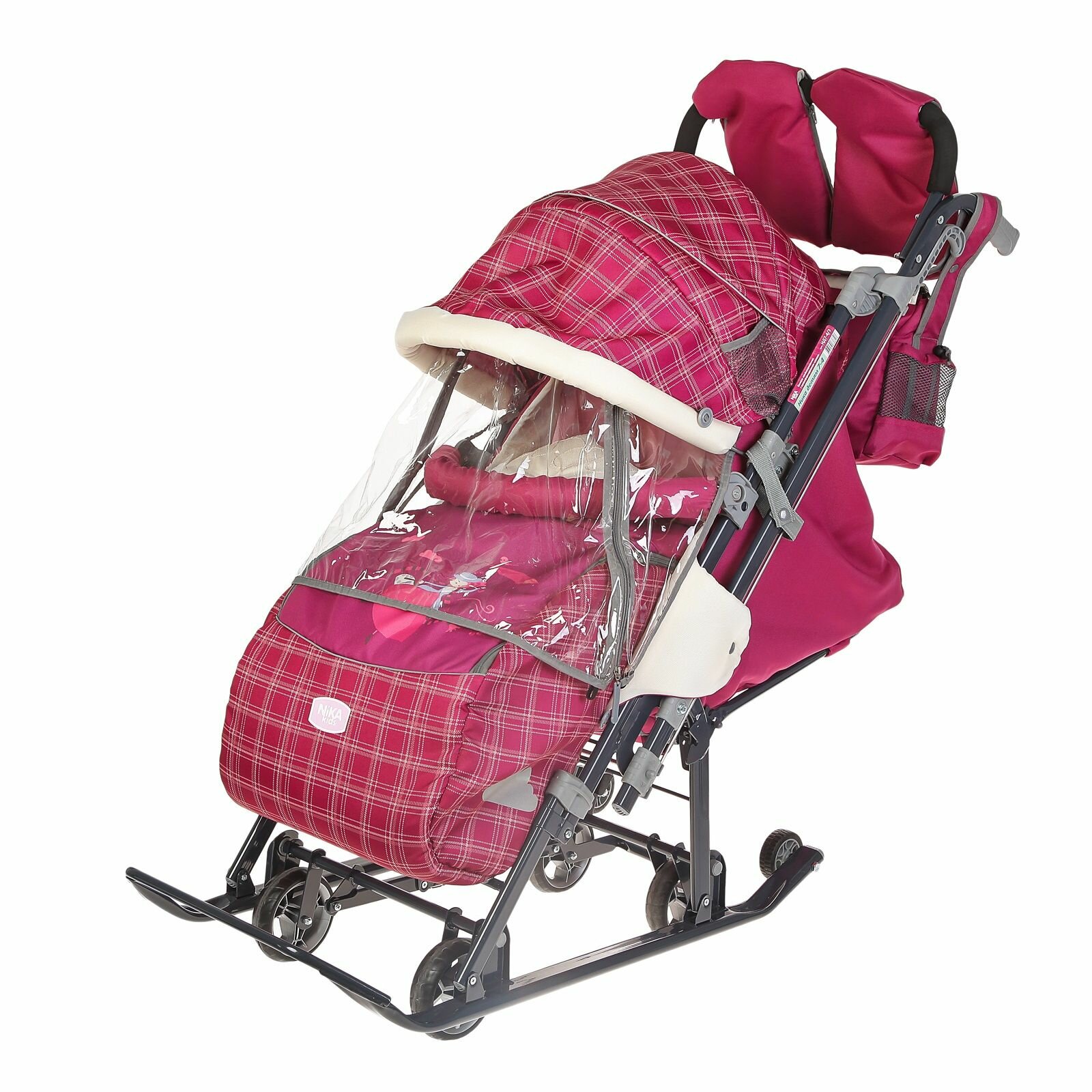 Купить Санки-коляска Nika Ника детям 7-4 НД 7-4, вишневый в клетку