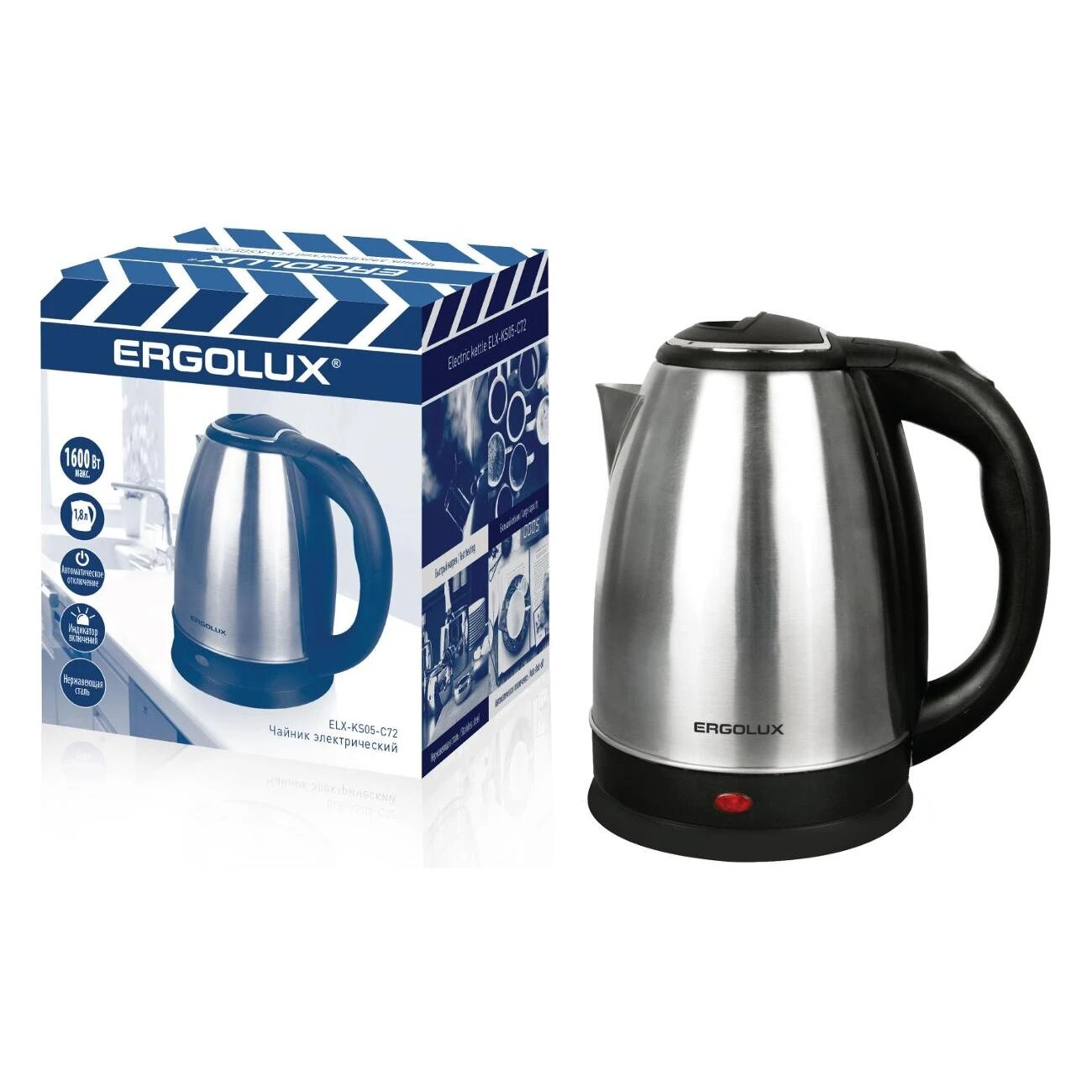 Чайник электр. ERGOLUX ELX-KS05-C02 промо нерж.сталь/пластик, диск 1.8л, индикатор, 220V 1600W черн
