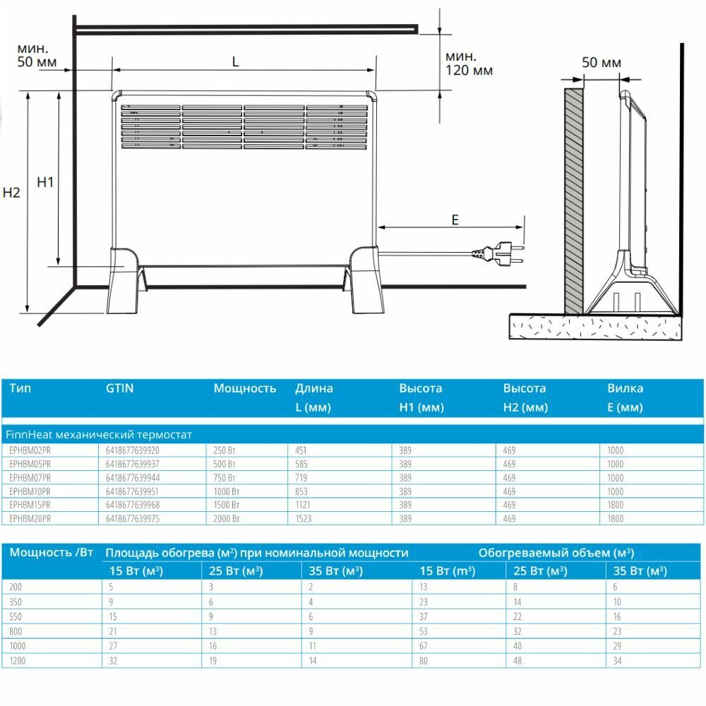 Энсто ФиннХит EPHBM07PR конвектор электрический 750 Вт механический термостат / ENSTO FinnHeat EPHBM07PR конвекторный обогреватель 750 Вт механический