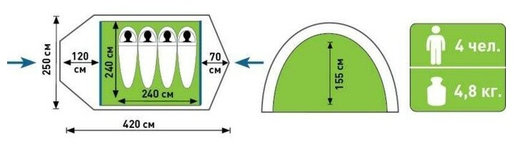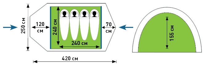 | Длина внешней палатки | 420 см |