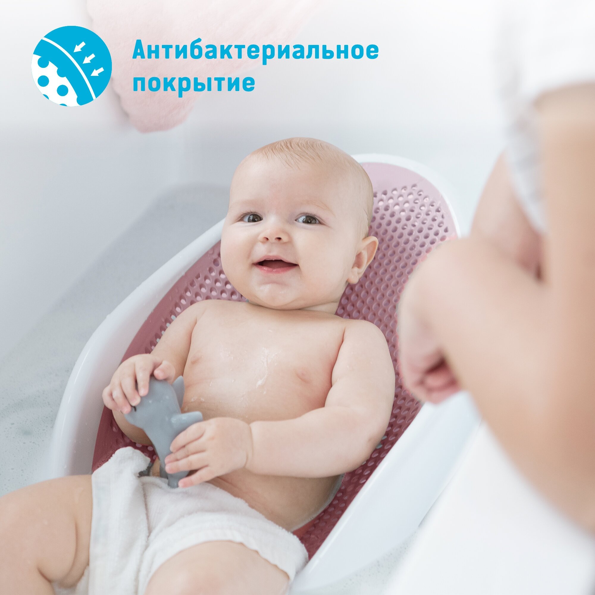 Удобная Силиконовая вставка. Удобный размер для ванны. Ребёнок отлично там помещается