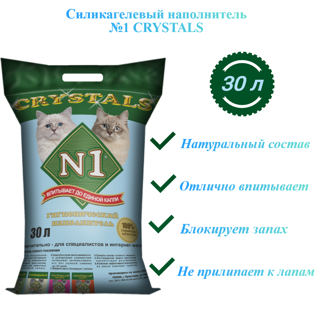 № 1 CRYSTALS – Наполнитель силикагелевый для туалета кошек (30 л)