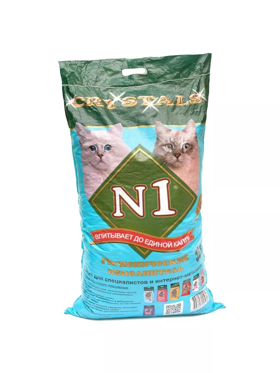 Наполнитель N1 Crystals для кошек, силикагелевый, 30 л, 12.2 кг