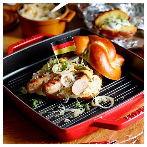 Staub Сковорода-гриль квадратная с 2 ручками, 28х28 см, вишневая 12012806 Staub