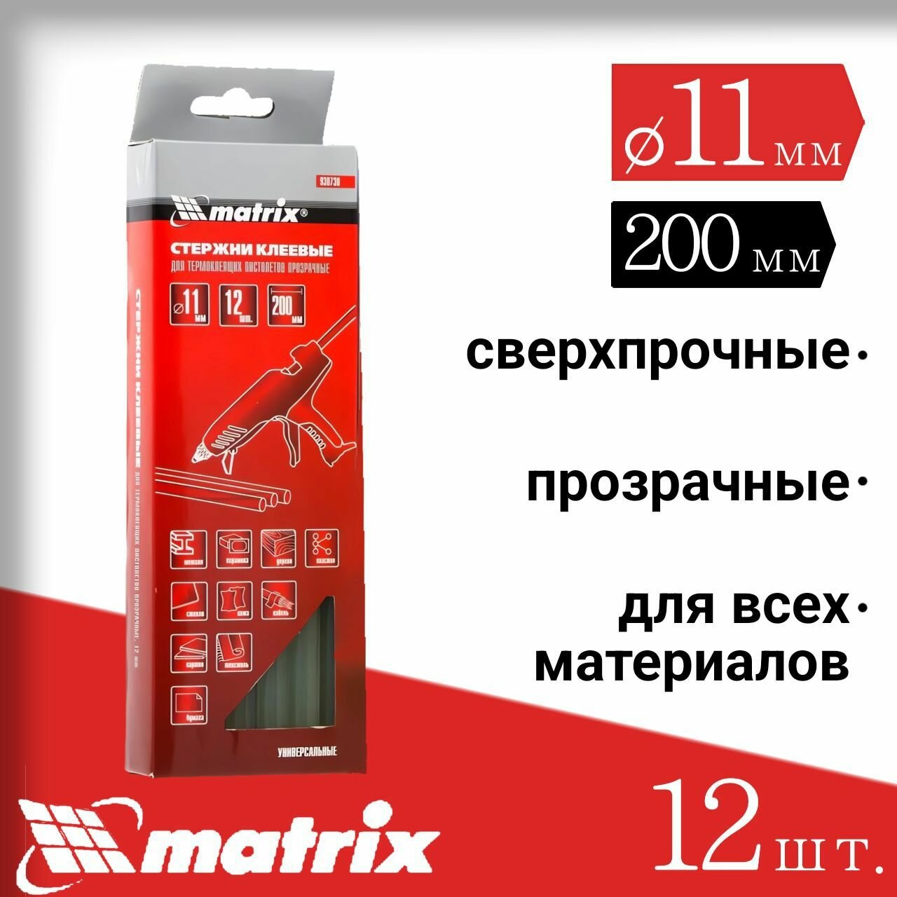 MATRIX 930730 Стержни клеевые, прозрачные, 11x200 мм ., 12 шт. в упаковке MATRIX 930730