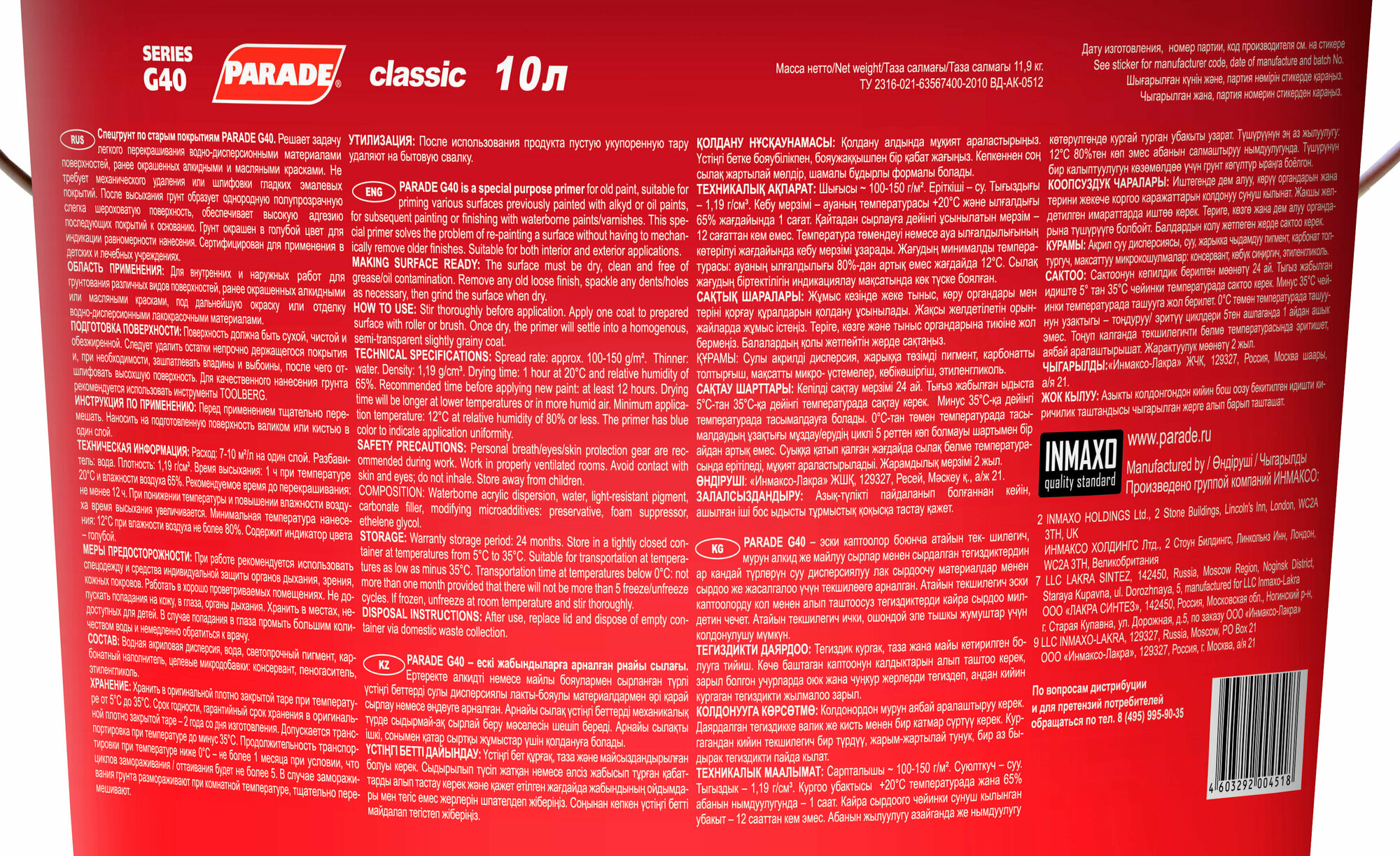PARADE Спецгрунт G40 Reanimator по ст.покрытиям 10л 90001327758