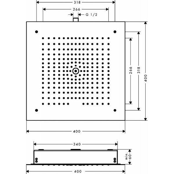 Верхний душ Hansgrohe Raindance E Air 1Jet 400x400 26252000 (внешняя часть)