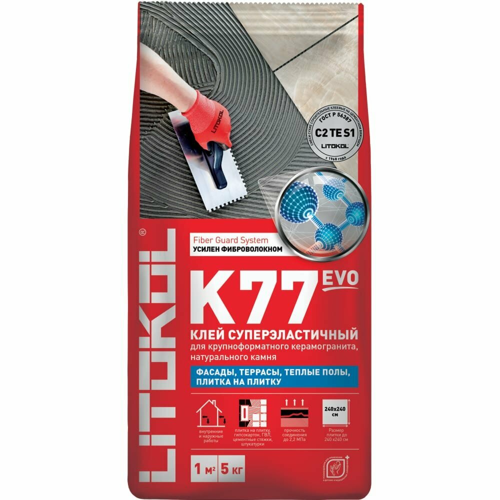 Суперэластичная клеевая смесь LITOKOL SUPERFLEX K77 (литокол суперфлекс К 77), 5 кг