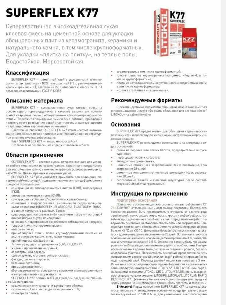 Литокол K77 Суперфлекс эластичный клей для крупноформатных плит (25кг) / LITOKOL K77 Superflex суперэластичный клей для крупноформатных плит (25кг)