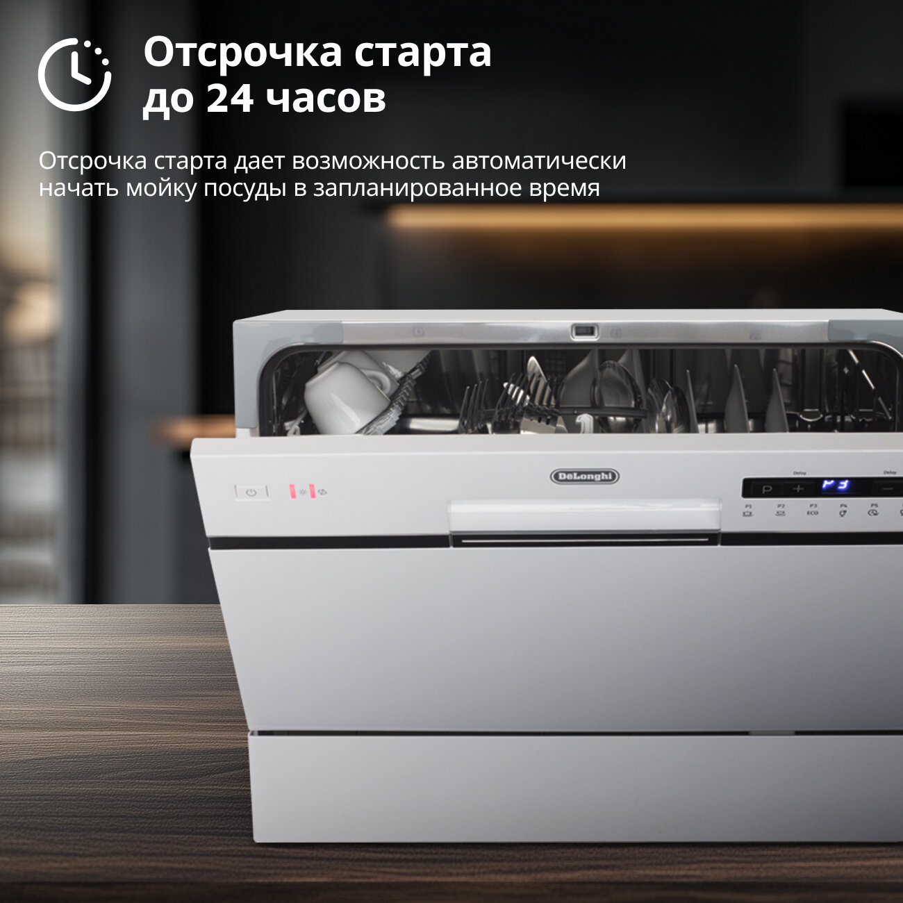 Настольная посудомоечная машина DeLonghi DDW 07T Onics, 6 комплектов, мини, 7 программ, компактная посудомойка отдельностоящая