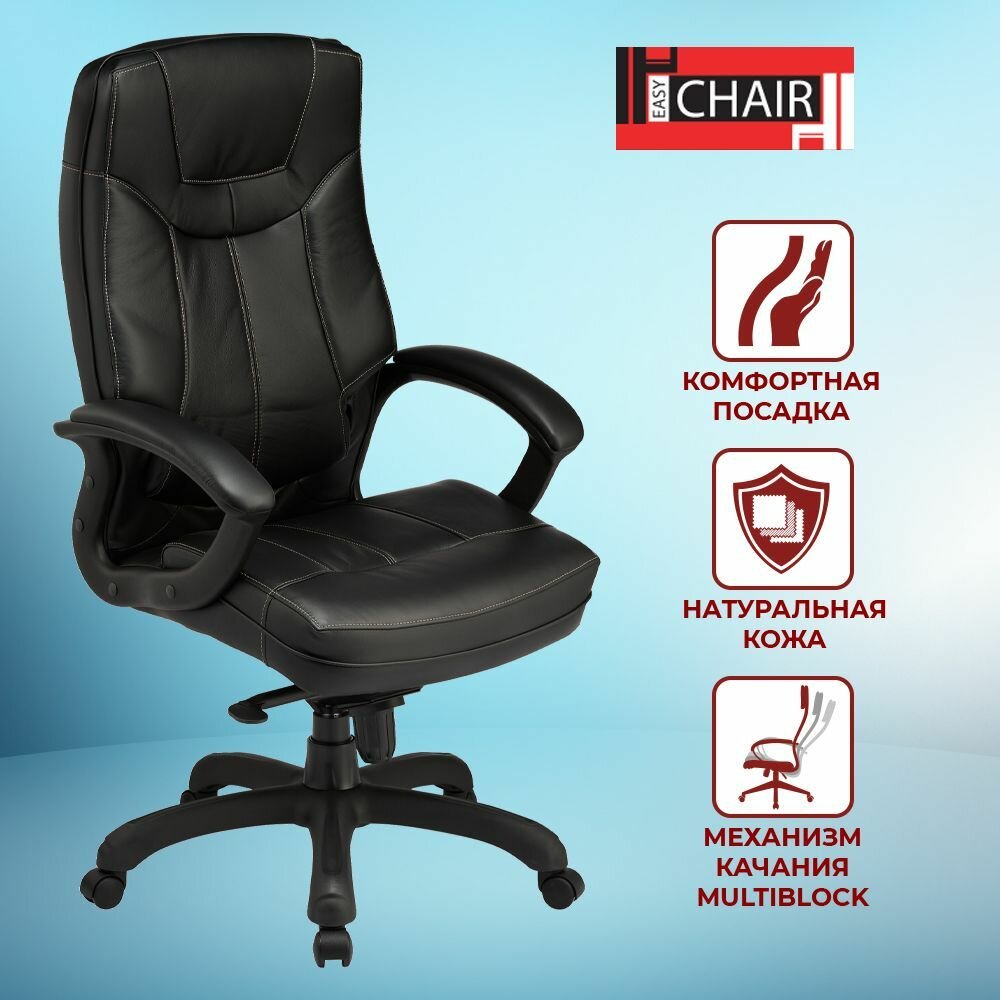 Кресло для руководителя Easy Chair CS-608Е черное (натуральная кожа с компаньоном, пластик)