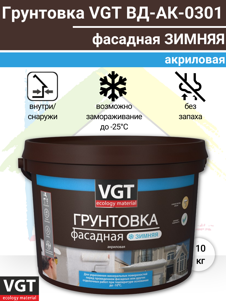 Грунтовка фасадная зимняя (до -10°С) ВД-АК-0301 VGT (10кг) интересное:
