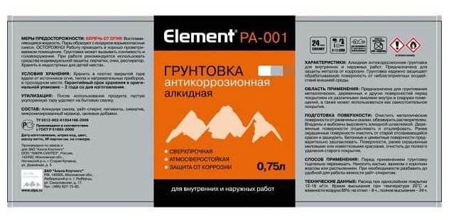 СохранитьГрунтовка антикоррозионная Element PA-001 серая 0,75 л интересное: