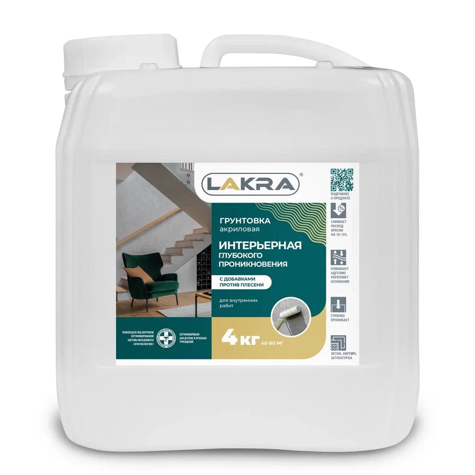 Грунт Лакра Интерьерный глубокого проникновения против плесени 4,0 кг 9077678 .