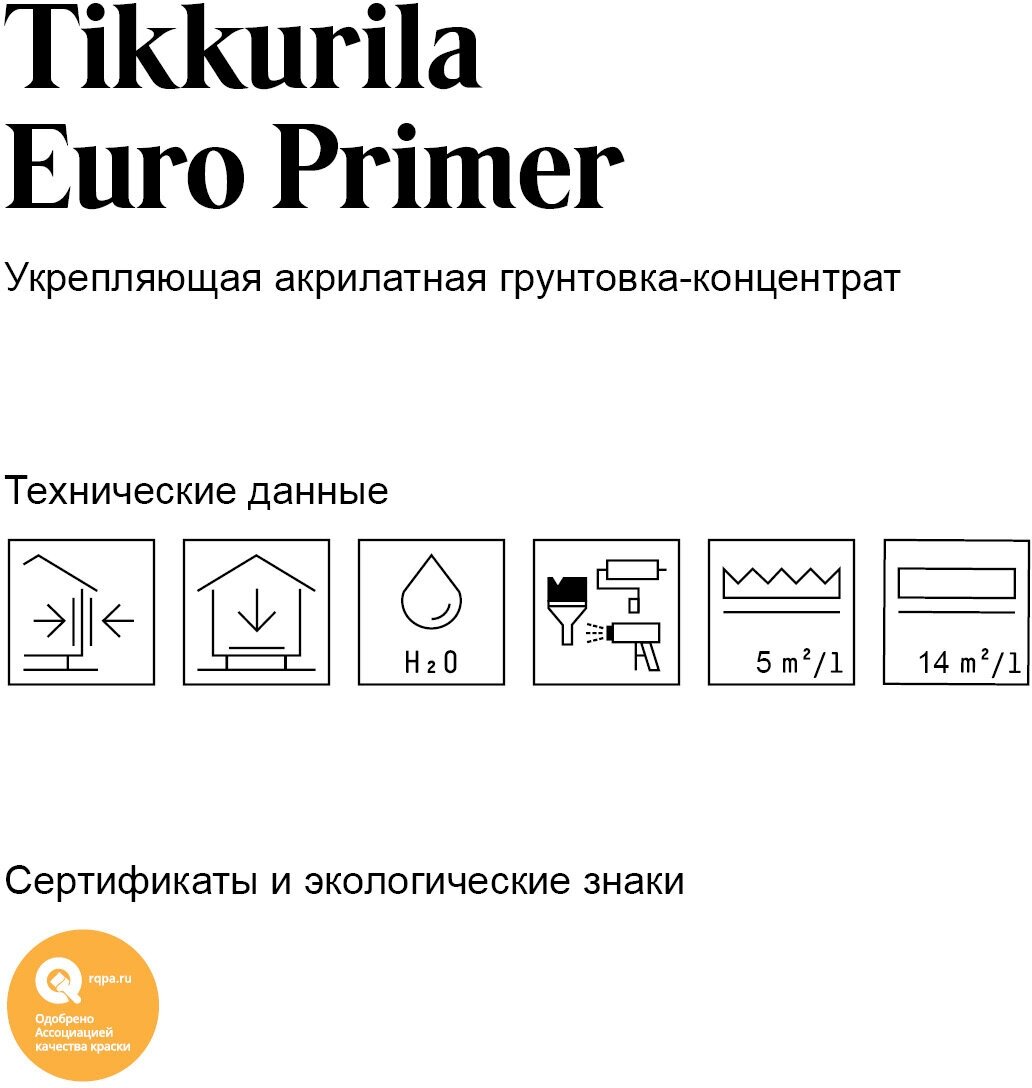 Tikkurila Euro Primer Концентрат 1:3 грунтовка акрилатная, укрепляющая 10 26140 .